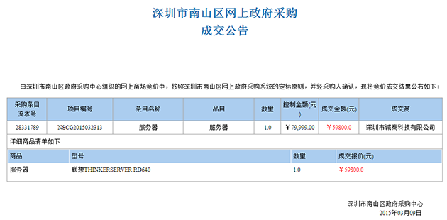 中標(biāo)深圳市南山區(qū)蛇口育才教育集團(tuán)育才中學(xué)服務(wù)器網(wǎng)上商場(chǎng)競(jìng)價(jià)項(xiàng)目(項(xiàng)目編號(hào):NSCG2015032313)